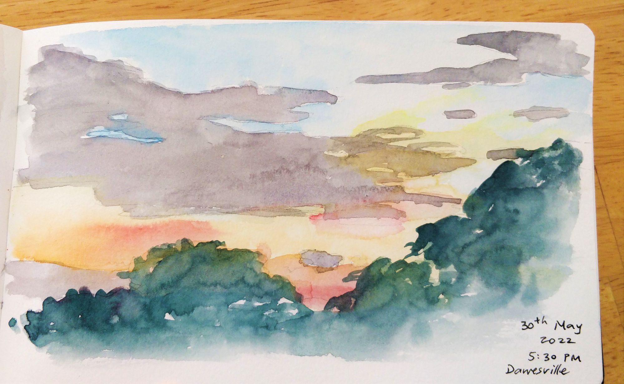 What am I appreciating recently about my nearby nature? The weather is becoming cooler, with those crisp mornings but still wonderfully sunny days where the sun's heat can warm you up again. The sunsets in the past week have been beautiful, pastel-coloured sensations and I even ventured out to do a quick watercolour painting (at the cost of some mosquito bites unfortunately).