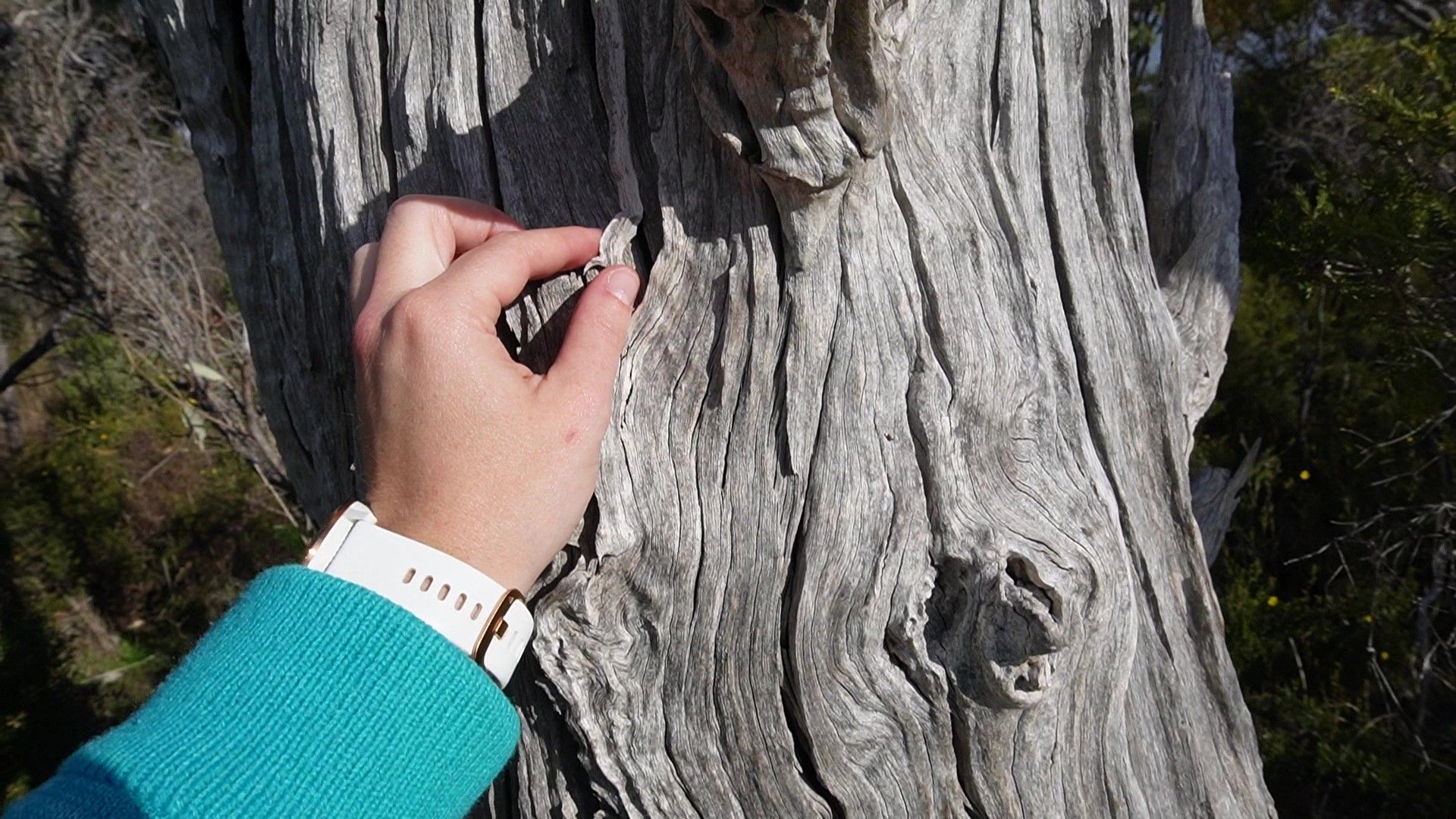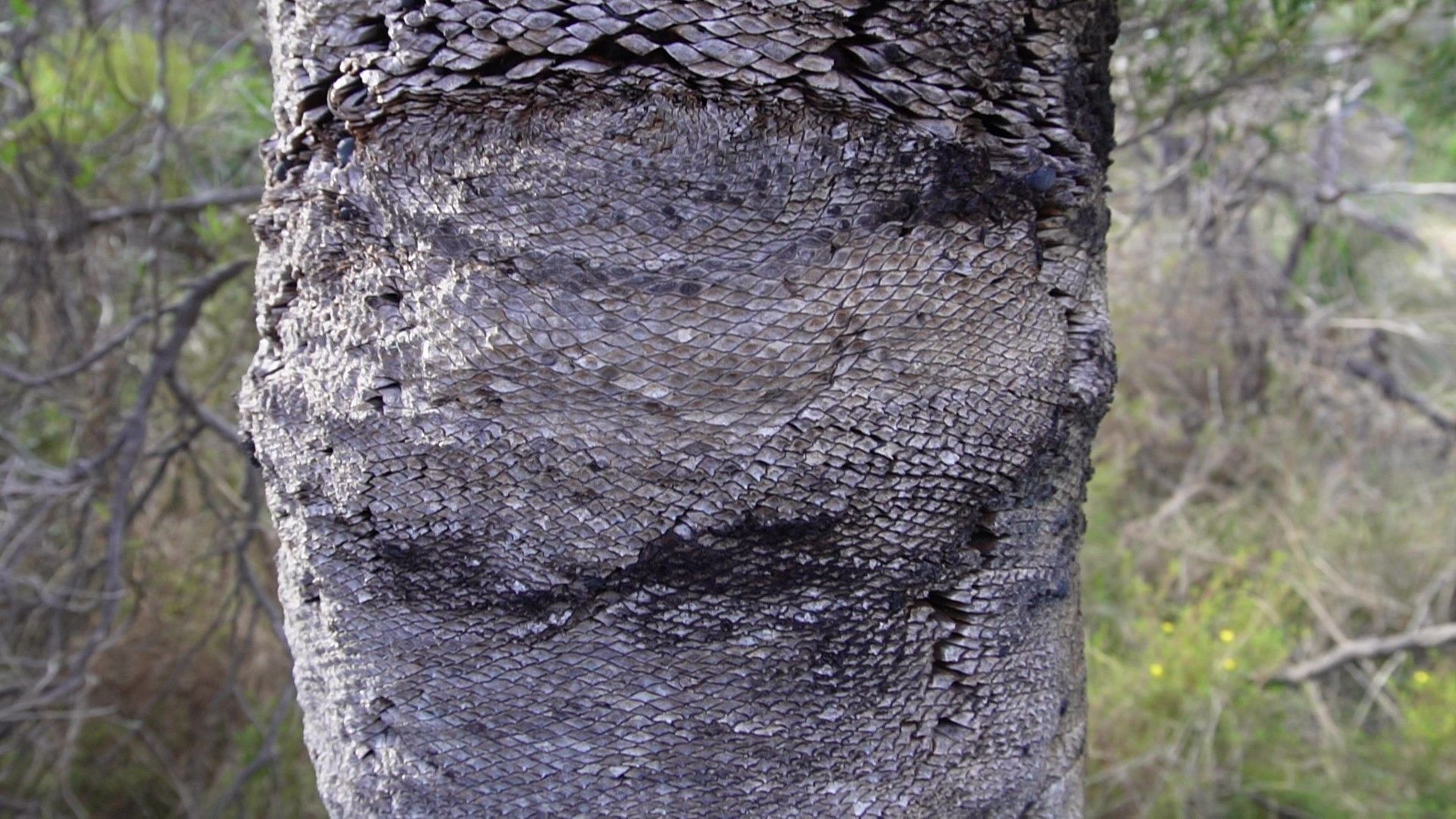 Yesterday I walked through my local bushland and my attention was caught by the textures around me - the cracks and hollows of a dead tree and the grass tree's reptilian-patterned trunk.