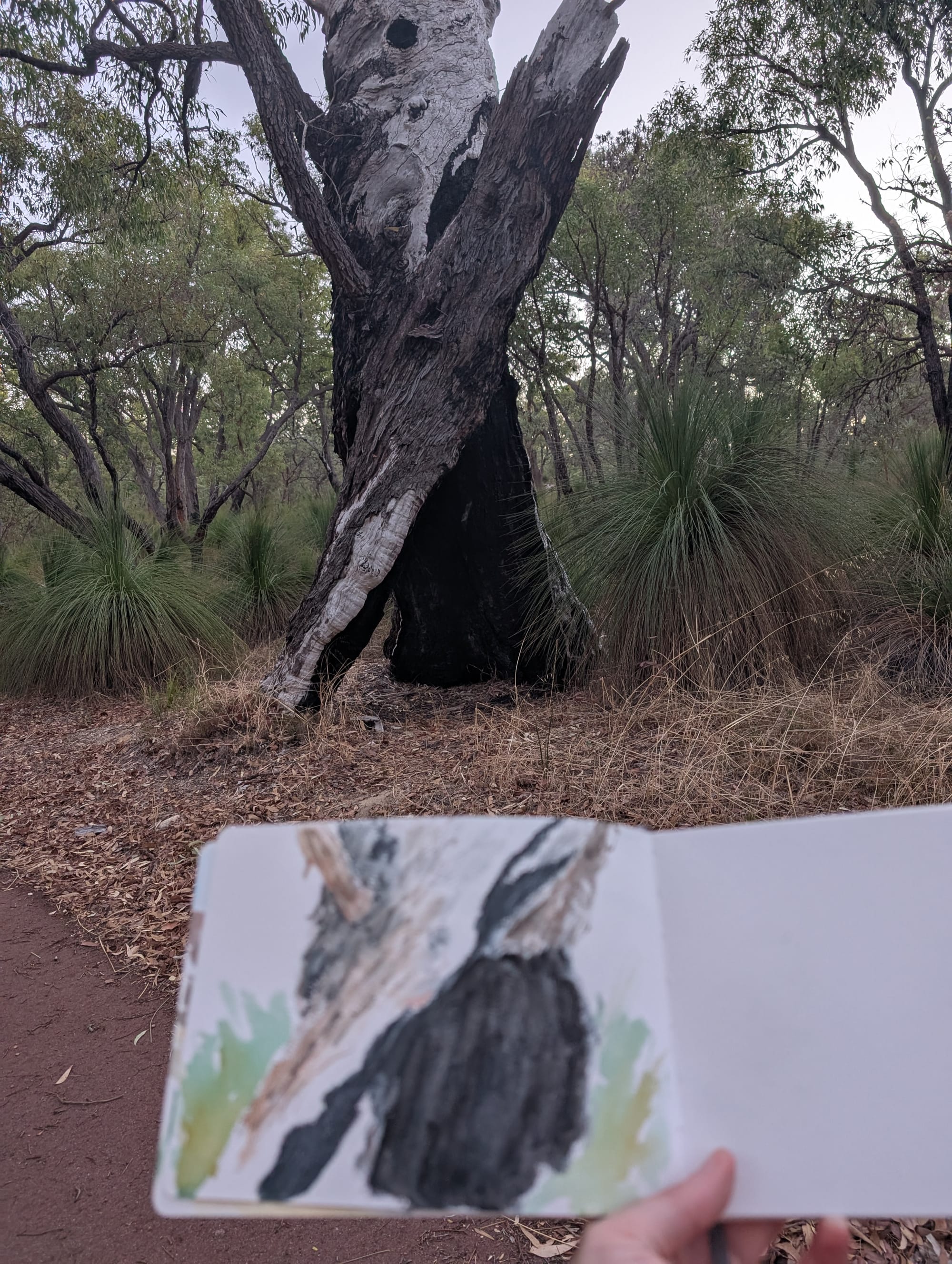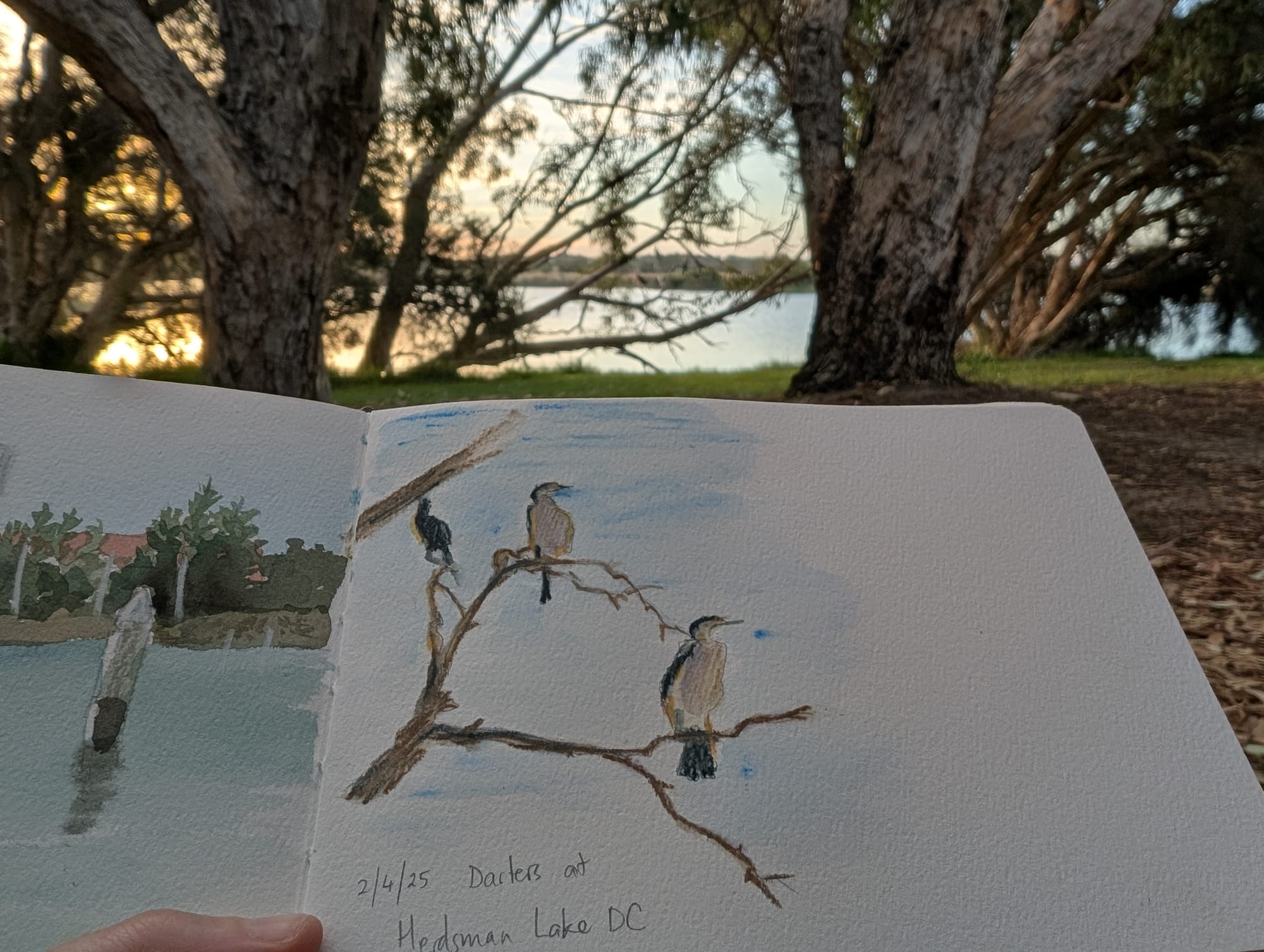 I noticed that I am more unsatisfied with paintings where the dilute appearance of the watercolours with the waterbrush is evident. Although the waterbrushes are handy and quick, I struggle to darken or use thick paint with them. For example, to paint foreground tree branches over (i.e. in front of) water. One way to boost the paint saturation is to spray my paint in advance so they absorb the moisture, but this requires remembering to do it before the painting stage (ideally when sketching).